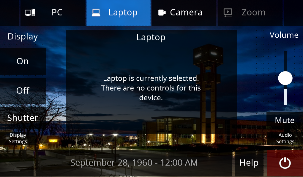 Note: Once the laptop input is initiated, you will see that there are no controls available for this device.